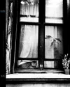 11:47 am, October 20, 2016Midtown East, NYCI had just received my free full year membership at the Museum of Modern Art and was on my way out the door when I noticed the an on his cell in from of the window looking out upon the museum's courtyard, and the large, tall rose that stood directly on the other side of the window.